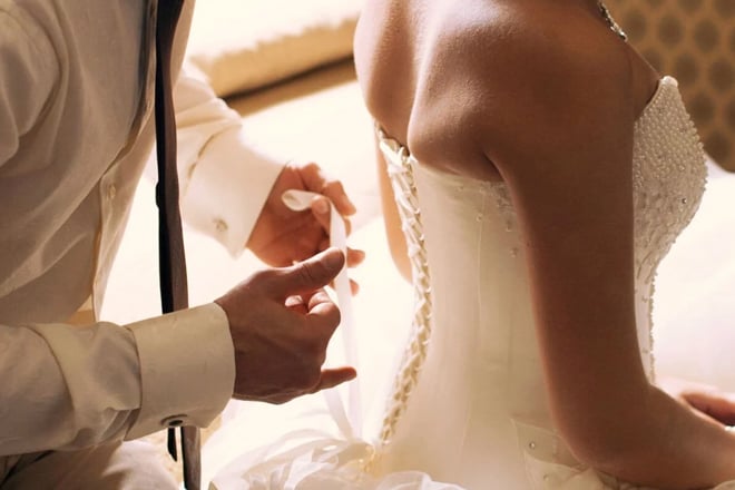 • Doğru Kıyafeti Giyin: Makyajınız ve saçınız yapıldıktan sonra kolayca çıkarabileceğiniz, düğmeli bir gömlek, bornoz veya özel tasarım bir gelin sabahlığı giyin.