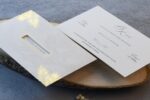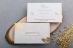 Düğün gününüzün zarafetini misafirlerinize ilk andan itibaren hissettirecek bu özel tasarım davetiye, modern ve lüks bir çizgiyi temsil ediyor.