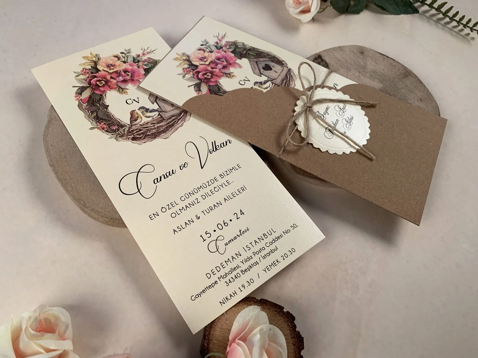 Kuş Yuvası Tasarımlı Düğün Davetiyesi